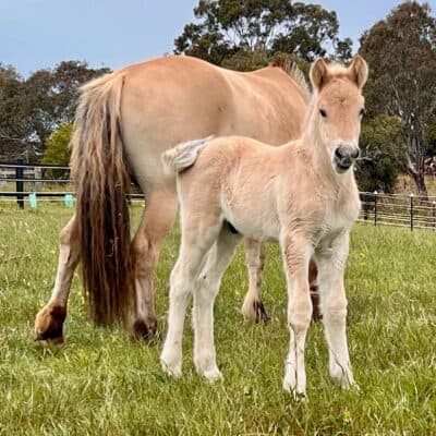 ABOUT THE SIRE: Forever Lloyd (Optimist Halsnæs) was imported inutero in 2016 (from Denmark) and currently competes in dressage (EA Medium & HRCAV Level 1) with plenty of ribbons, and had his first go at working equitation (3PE) in 2024, taking out series champion in the Barwon Southwest 3PE Series. Lloyd perfectly showcases the calm, willing temperament the fjords are known for.